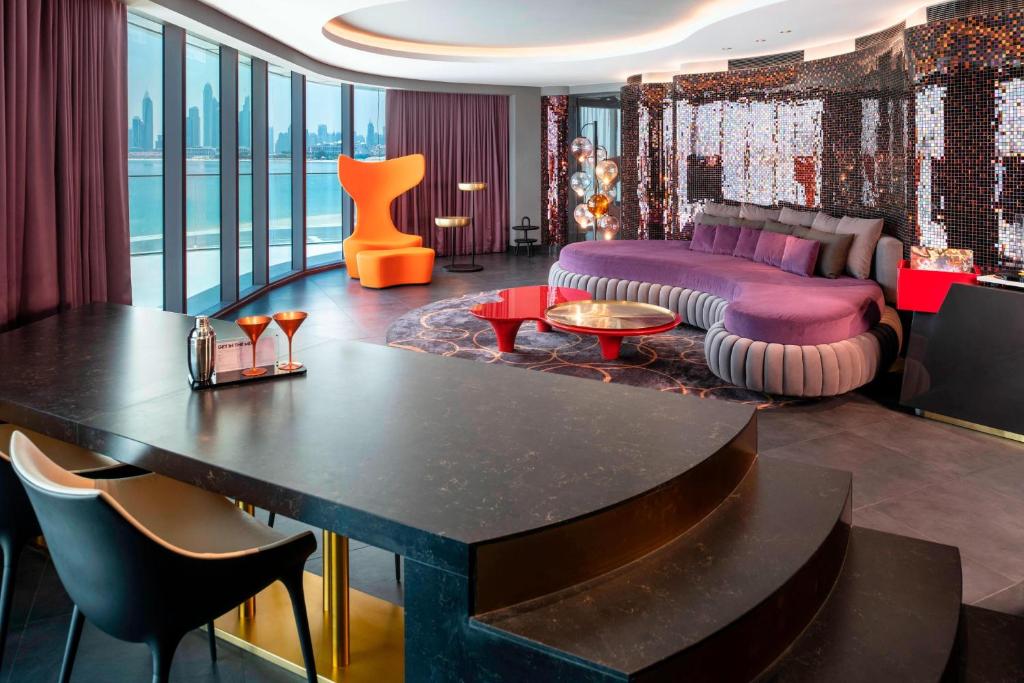 W Dubai — The Palm հյուրանոցը գտնվում է Դուբայի Պալմ Ջումեյրա թաղամասում՝ Բուրջ Ալ Արաբից 14 կմ հեռավորության վրա։ Դուբայի միջազգային օդանավակայանը գտնվում է 38 կմ հեռավորության վրա, իսկ Ջումեյրա լողափը՝ 12 կմ, իսկ Դուբայ Մարինա առևտրի կենտրոնը՝ 12.3 կմ։
